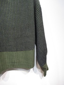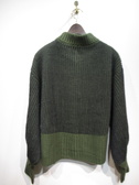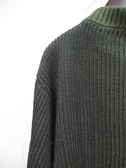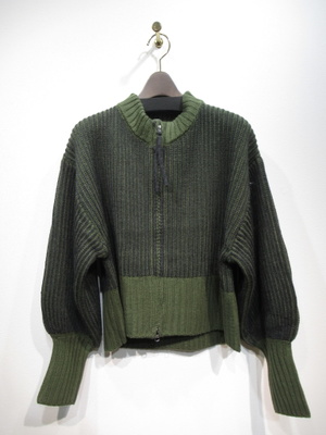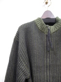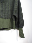 ブルゾン風のファスナーカーデです 身頃はグリーンと黒の糸の畦編み 襟ぐり、袖口 裾はグリーンのリブ 身幅広めでドロップショルダー 袖筒広め 手洗い可能 スカートあり