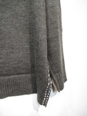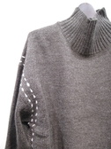 ハイネック ざっくりニット 裾前後差あり 脇スリット 袖付け根から脇ラインにかけて白でアクセント 手洗い可能