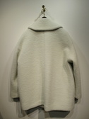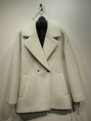 大きな襟のウール入り生地コート、裏地あり、フロントホック