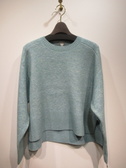杢のドロップショルダーニット、裾前後差あり、脇スリット、袖口・裾・首周りリブ、手洗い可能