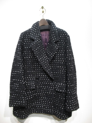 白いドット柄のようなツイード生地 テーラード襟 ダブル 裏地付き