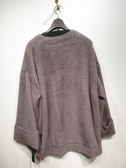 シャギーの生地 ざっくりデザインで大きく空いたV空き 袖筒広め 袖口折り返し タートルニットなど重ね着として