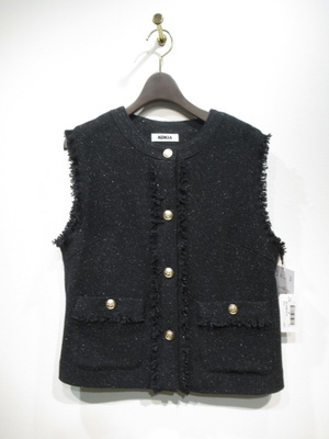 ツイード フリンジ(襟ぐり アーム 前たて)金ボタン 裏地あり スカートセットできる(ID:118594)