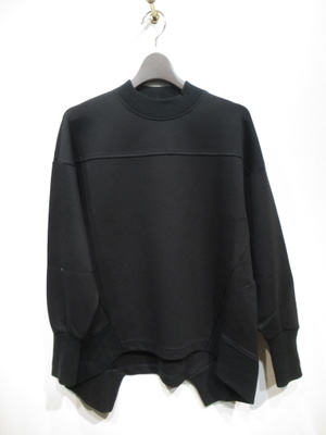 ビックシルエットのトレーナーデザイン 前身ごろヨークのところに切り替え 裾前上がり 襟ぐりと袖口、脇にリブの異素材 手洗い可能