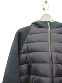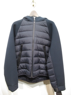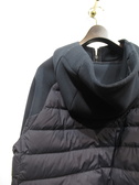 キルティング(ダウン)とソフト段ボール素材 フード襟 フロントファスナー 裾はゆるくゴムが入ってます