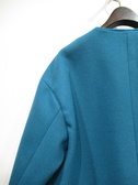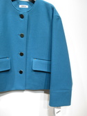 襟なしショート丈コート、ドロップショルダー、大きなボタンが特徴、裏地あり