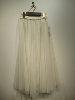 ※春物新作 ウエストギャザーゴム チュール2枚重ね 裏地はサテン地(裏地両サイドにスリット入り・23cm) 手洗い可能