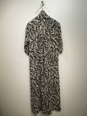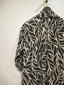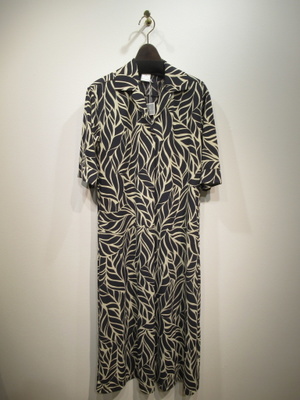 ※春物新作 とろみのある生地 グレー・ネイビーをベースにしたボタニカル柄 5分袖ワンピース 開襟・・タック入 後ろ身頃もワンタック入 脇ポケット 裏jなし 手洗い可能