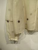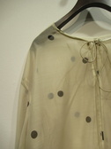 ※春物新作 透け感生地のドット柄 ドロップショルダーで身幅広め 後ろネックにリボン紐 袖口ゴム 袖の下の方に切り替えがあり袖口のゴムをたくし上げると切り替えでベルスリーブのようになる(カーキの一番下の写真で紹介) 手洗い可能