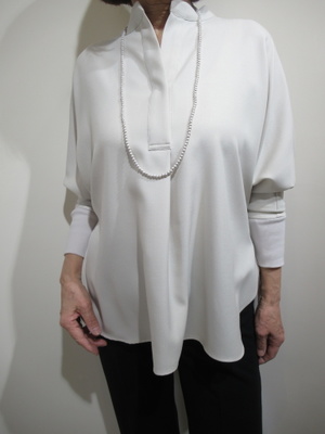 ※春物新作 ドルマン袖のオーバーブラウス スキッパー襟 後ろ身頃タック入 裾は前後差有り 脇スリット 袖口リブ 手洗い可能