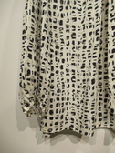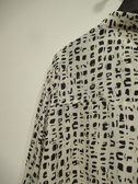 ※春物新作 小紋柄(金糸をところどころ使用)ドロップショルダー 8分袖 袖口ギャザーゴム フロントギャザー 細めのリボンタイ フロント10cmほど開き(2個ボタン)手洗い可能