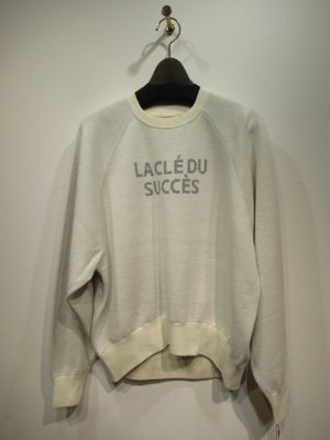 ※春物新作 綿素材、ラグラン袖のトレーナータイプ、フロントロゴ入り(ライトグレーが黄緑・オフホワイトがグレー)、裾・袖口・襟ぐりがリブ、手洗い可能