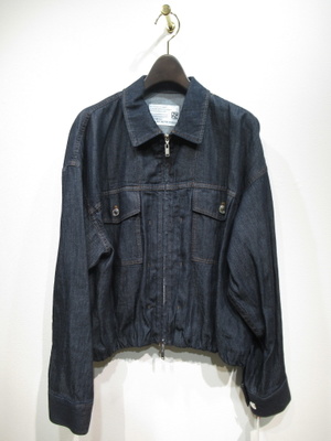 ※春物新作 インディゴGジャン、ドロップショルダー、やや身幅広め、前ファスナー(シルバー)、裾はギャザーゴム入り、ステッチオレンジ、裏地なし、柔らかい生地、手洗い可能
