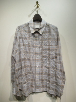 ※春物新作 チェック柄、サッカー地のように表面はややシワっぽく見えます、ドロップショルダー、裾前後差あり、袖口カフス、手洗い可能