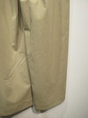 脇に近い部分のタックが入っている、太めのワイド、脇ポケットあり、裏地無し、前ファスナー、ウェスト後ろゴム、手洗い可能