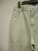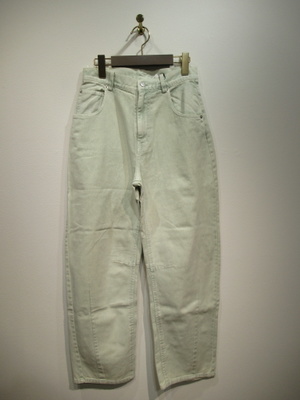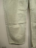 生地は綿100% 洗いをかけてますので所々色味わいのある色落ちが特徴 全体に緩めのカービーシルエットのため裾にかけてすぼみがかったシルエットが特徴(裾フロントセンターと膝の後ろ内側ダーツ)後ろ貼りポケット左右デザイン違い 手洗い可能 同素材でスカートあり