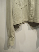 テンセル生地のジャケット風のシャツ、フロントに大きめの張りポケット、襟はステンカラー、フロントボタンはシルバー、袖口カフスもシルバーボタン、手洗い可能手洗い可能