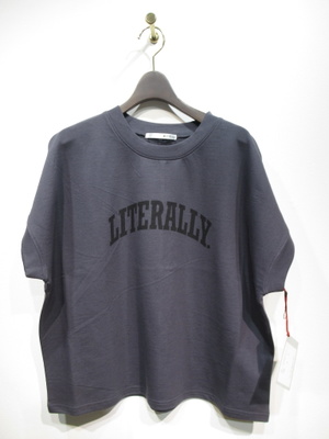 スクエアデザインのカットソー、ロゴ入り、フレンチスリーブ、白はブラウン系・チャコールは黒のロゴ文字、手洗い可能