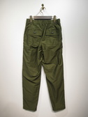 ベイカーパンツ、ややストレート気味、ウェスト後ろゴム入り、前ファスナー、裏地無し、ウェストやや小さめ、生地に光沢有り、手洗い可能