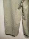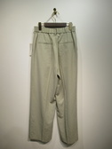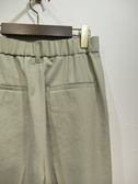 2タック入りのきれいめパンツ、センターラインあり、前ファスナー、後ろウェストギャザー、裏地無し、手洗い可能