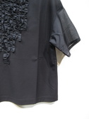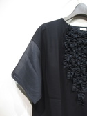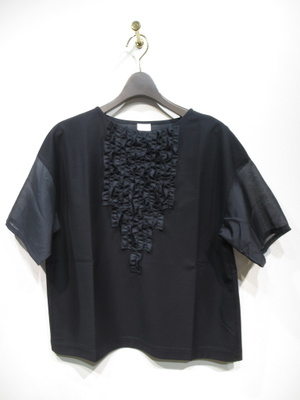ドロップショルダー スクエアデザインのカットソー 袖口とフロント(フリル)に異素材使用 裾は前後差なし 手洗い可能