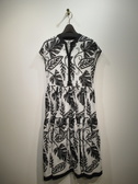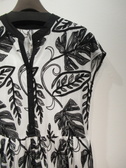 ウエスト切り替え スカートギャザー途中ティアード切り替え 身頃はフロントボタン フレンチスリーブ スキッパー襟 襟ぐりから前立てとスカート裾・・黒の配色 左脇着脱用のファシナー有り ペチコート付き
