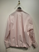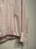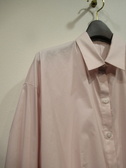 ドロップショルダー長袖シャツ 裾はゴム入り 内側に折り曲げてます コクーンシルエット 後ろ身頃タック入り 袖カフス広め ブルーのみストライプ柄 ほかは無地 手洗い可能