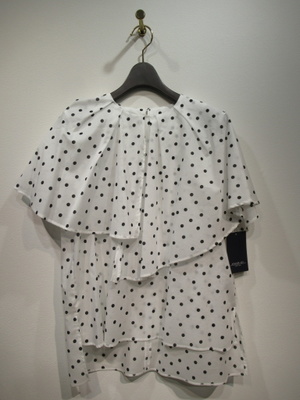 フリル襟2枚重ね 左右アシンメトリーな長さ違い 後ろカギホック 裾・・前後差有り(脇スリット)手洗い可能