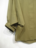 ドルマンスリーブ、襟無し、前開き比翼ボタン、袖口幅広ゴム入り、裾はラウンド型、手洗い可能