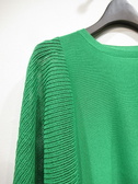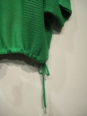 六分袖、袖筒広め、袖から脇にかけては畦編み・身頃はメリヤス編み、裾絞り(ドロスト)右側、手洗い可能