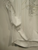 英字プリントのロゴ、フレンチスリーブのカットソー、脇にワンタックが入りブラウジングのようなボリュームを出しています、裾前後差あり、手洗い可能