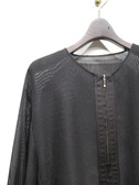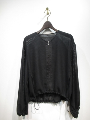 前ファスナーのメッシュブルゾン(ファスナーはシルバー)裾はドロスト使用、袖口ギャザーゴム、前たて同色異素材・無地のテープデザイン、手洗い可能