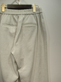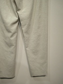 ウェストゴムのテーパードパンツ、祖座は麻混入り、脇ポケット、手洗い可能