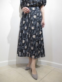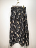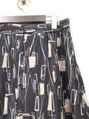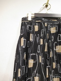 ID:119100と同素材のスカート、黒地にベージュと白の模様、両脇ポケットあり、手洗い可能、裏地付き、後ろファスナー