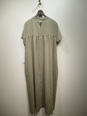 ヨーク切り替え ギャザー寄せ 半袖ネックの後ろボタン 脇ポケット 裏地無し 手洗い可能