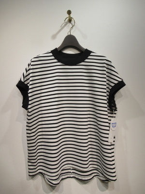 黒白ボーダー 襟ぐりと袖口は黒の無地前後差あり 手洗い可能