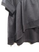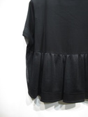 黒の無地のカットソーに細かいカットワークレースを重ねたデザイン(ヨーク切り替え)、重ねたレースはタックギャザーでふんわりと立体感がある、レースの裾は黒の無地、お袖も袖口近くに同じカットワークレースをあしらいやや透け感ももたせています、手洗い可能
