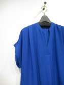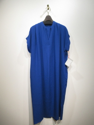 スキッパー襟、サックワンピース、前後タック入り、裾後ろスリット入り、袖はダブル、脇ポケットあり、手洗い可能
