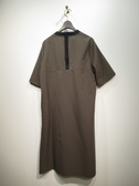 半袖 丸首ワンピース 襟ぐり 後ろファスナー部分 両脇 折りたたんだ内側に黒の異素材 裏地無し 手洗い可能
