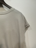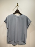 フレンチスリーブのスクエアカットソー、フロントに同生地で染め模様のデザインが重なってます、左下にシルバーのワンポイントあり、手洗い可能