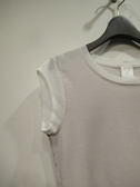フレンチスリーブのカットソー、襟ぐり・裾・袖がパワーメッシュ素材使用、黒は黒・グレージュは白のパワーメッシュ、手洗い可能