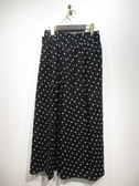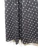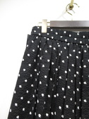 ウェストギャザー、くるぶし丈のスカート、裏地付き、サッカー地に白の小花刺繍、手洗い不可(クリーニング使用)