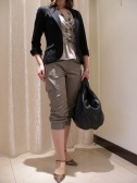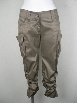 膝下のシャーリング部分は足にピッタリフィットします。腿はややゆるめです。光沢のあるストレッチ素材。