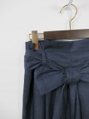 ダンガリー生地 ボリュームのあるウエストリボンマークのパンツ ウエストゴム 共のベルト 裏地なし