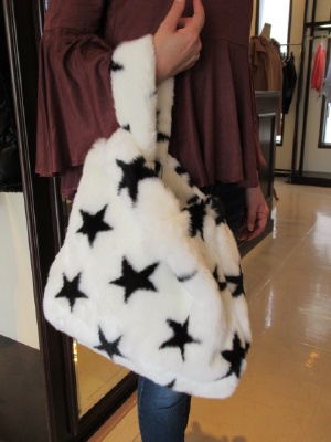 フェイクファーの星型デザイン、片方の手をクロスにして持ち手にする、
