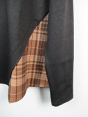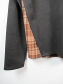 ややドロップショルダーで左部分にチェックの異素材、左脇部分から切り替えになっていて後ろ身ごろも少し別布が見えます