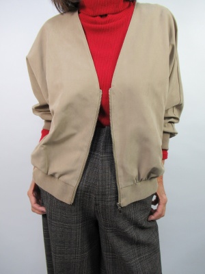 ウエストマークしたワイドパンツは腰回りがジャストフィットしてコンパクトな作りです。トップスにシンプルなブルゾンを合わせてみました!スタイリッシュ度80%、エレガンス度20%。