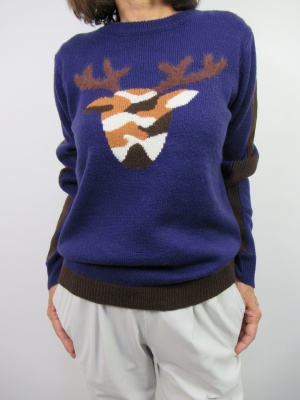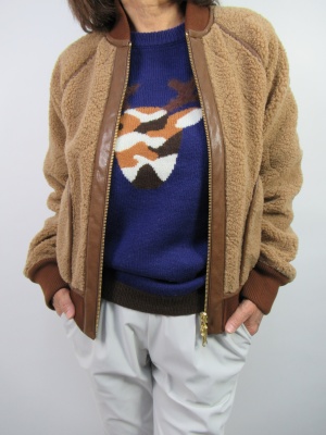 鮮やかな色にワンポイントの図柄が楽しいニットをパンツに合わせて。ボアのブルゾンでよりデイリーファッションをお洒落に。ポイントはファーのショルダーバックで大人の休日を!アクティブ度100%。