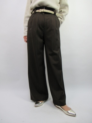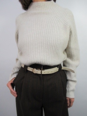 茶系が流行している今年。ワイドのシルエットがとても綺麗なウエストマークデザインのパンツ。トップスはゆるっとしたニットをインして着こなすとメリハリが出る綺麗でスタイリッシュなコーデに!スタイリッシュ度80%、アクティブ度20%。