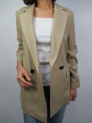 シャツスタイルでタック入りのパンツでスタイリッシュに着こなす。ウエストマークしてメリハリあるコーデに。肩に羽織ったビッグジャケットで今年っぽいジャケットコーデに!スタイリッシュ度70%。エレガンス度30%。
